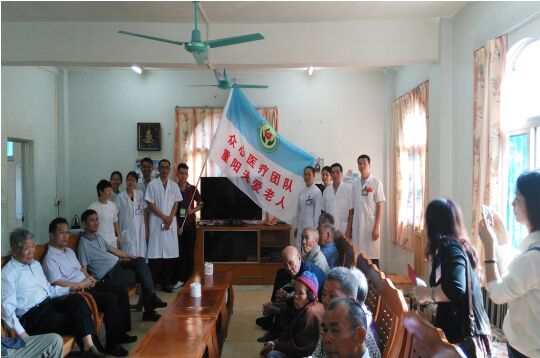 圖為眾心醫(yī)療團(tuán)隊及泰美鎮(zhèn)政府領(lǐng)導(dǎo)到泰美敬老院慰問活動