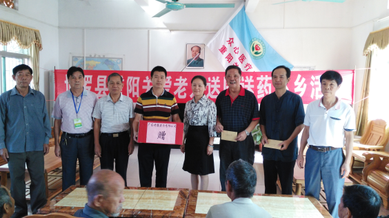 圖為廣東穗康醫(yī)藥有限公司、博羅康佳、羅浮山黃龍宮太上丹道養(yǎng)生試范基地、博羅彭城慈善會為敬老院送上慰問金及醫(yī)療用品